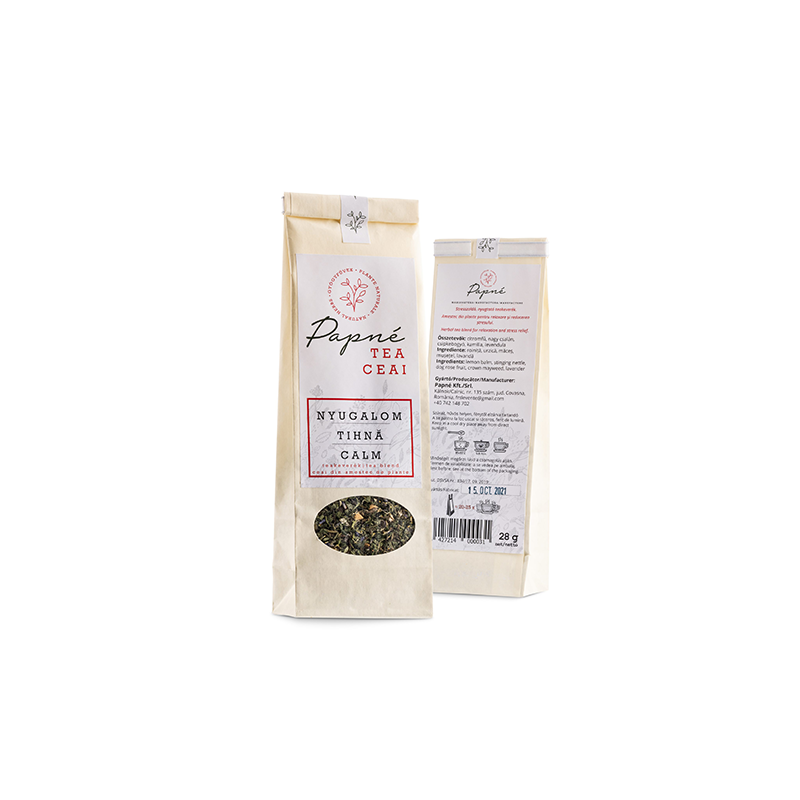 Amestec de ceai liniștitor, cu roiniță și măceșe, conceput pentru relaxare și reducerea stresului.