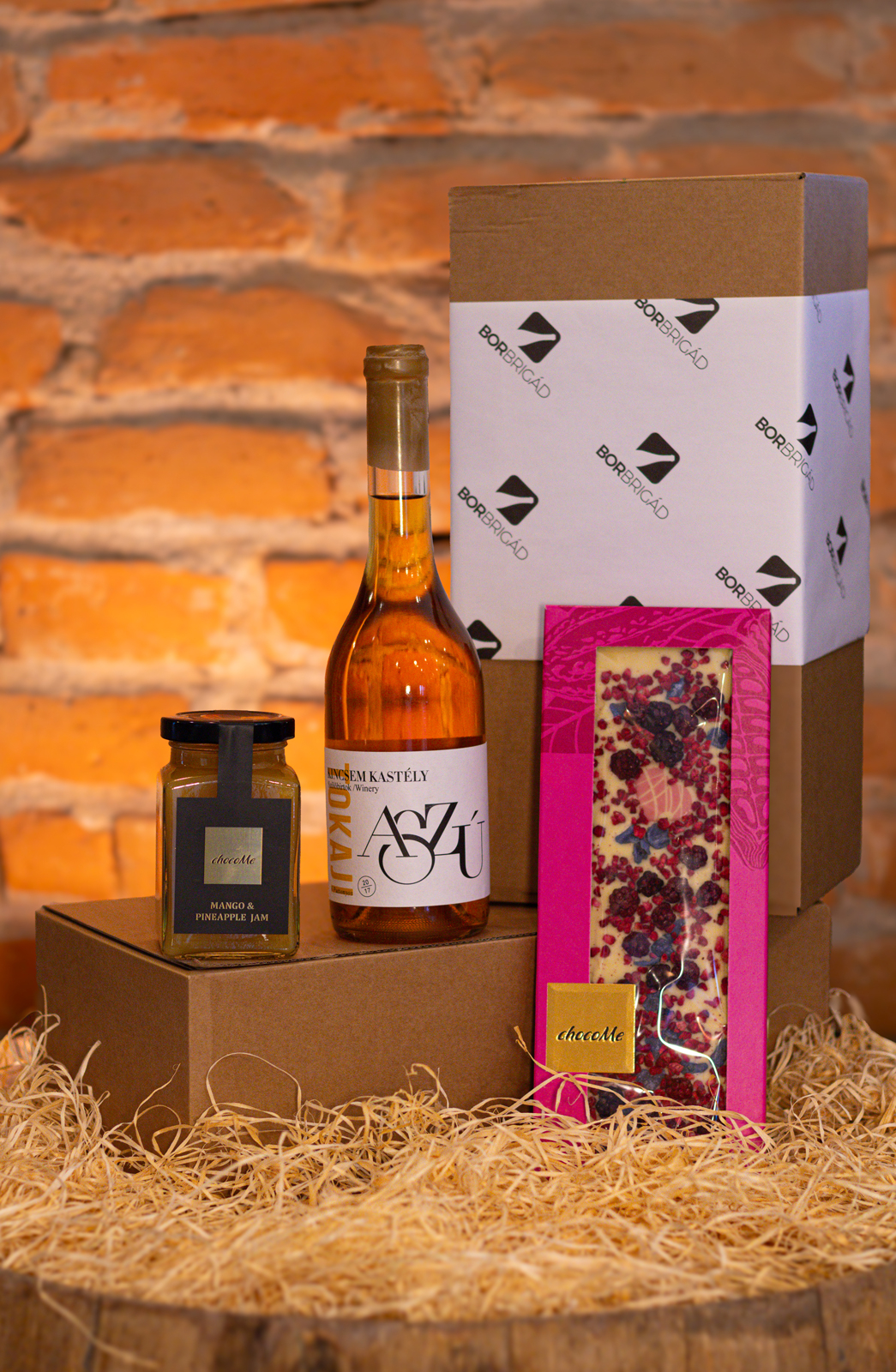 Vinul este însoțit de o tabletă de ciocolată albă artizanală ChocoMe, cremoasă și delicată, care completează armonios dulceața naturală și textura catifelată a vinului Aszú.